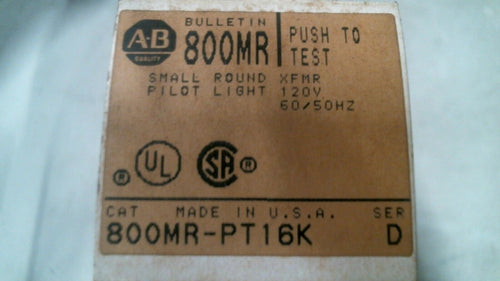 ALLEN BRADLEY 800MR-PT16K SMALL ROUND PIOLET LIGHT XFMR SER.D 120V -FREE SHIP